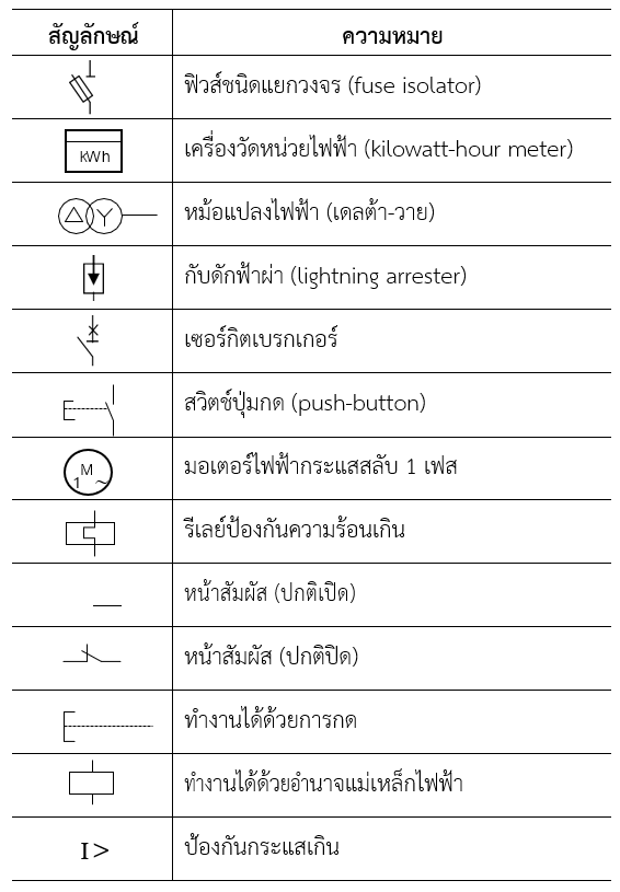 แบบไฟฟ้าแบ่งออกเป็นหลายแบบด้วยกัน ตามความต้องการที่จะแสดงข้อมูล การอ่านแบบ ไฟฟ้าจะต้องทราบสัญลักษณ์ที่ใช้ในการเขียนแบบว่าใช้แทนอุปกรณ์ไฟฟ้าอะไร ตัวอย่างสัญลักษณ์ที่ ใช้ในการเขียนแบบทางไฟฟ้า มีดังนี้
